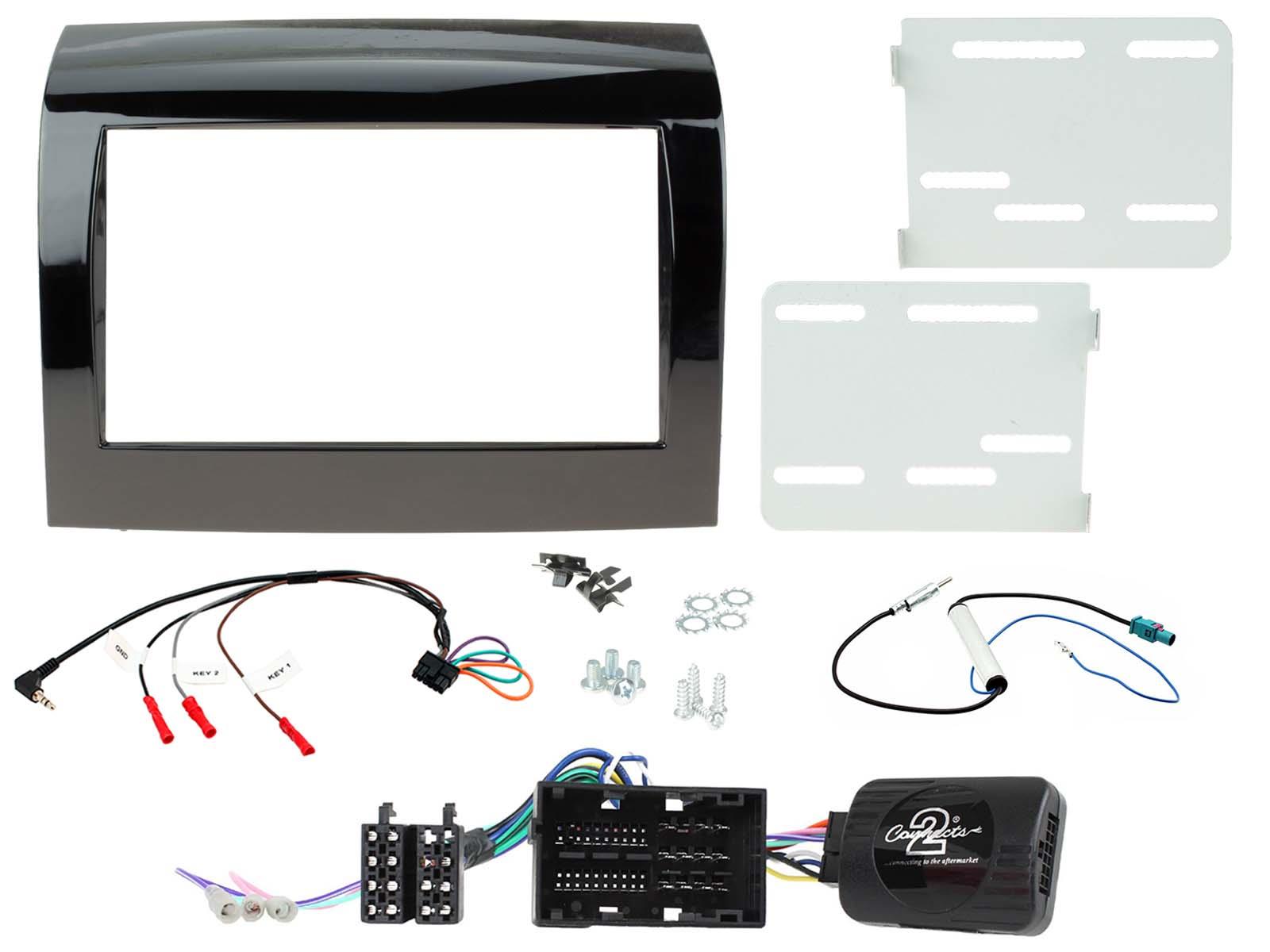 Fiat Ducato Installation Kit. Supplied With Black Double DIN Fascia, Steering Wheel Control Interface, FAKRA Antenna Adapter & Universal Patchlead