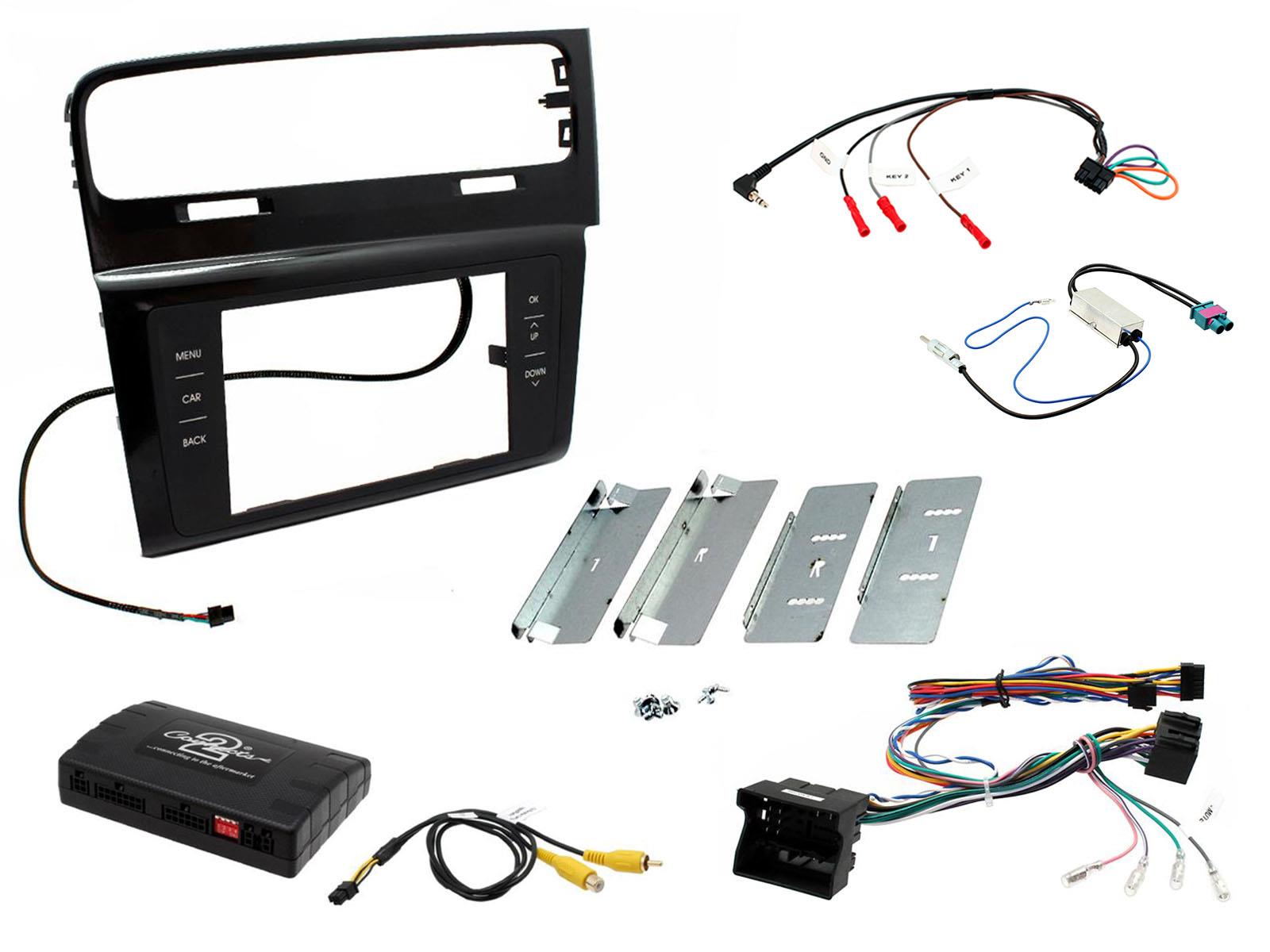 VW Golf VII Installation Kit. Supplied With Infodapter, Black Double DIN Fascia Plate, Capactive Touch Buttons, Twin FAKRA Antenna Adapter & Universal Patchlead