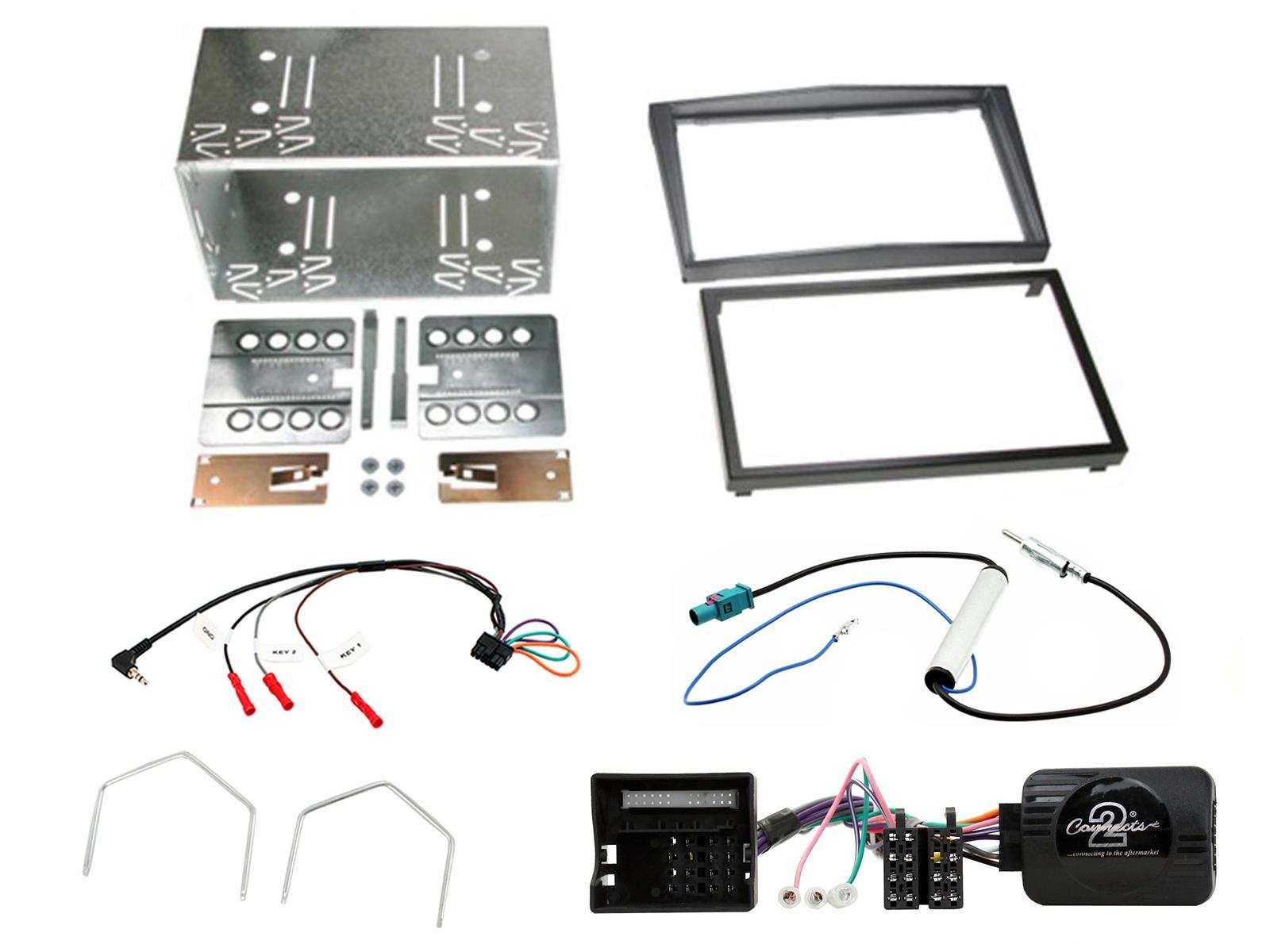 Vauxhall Installation Kit. Supplied With Dark Silver Double DIN Fascia, CAN-Bus Steering Wheel Control Interface, Antenna Adapter, Vauxhall Release Keys & Universal Patchlead