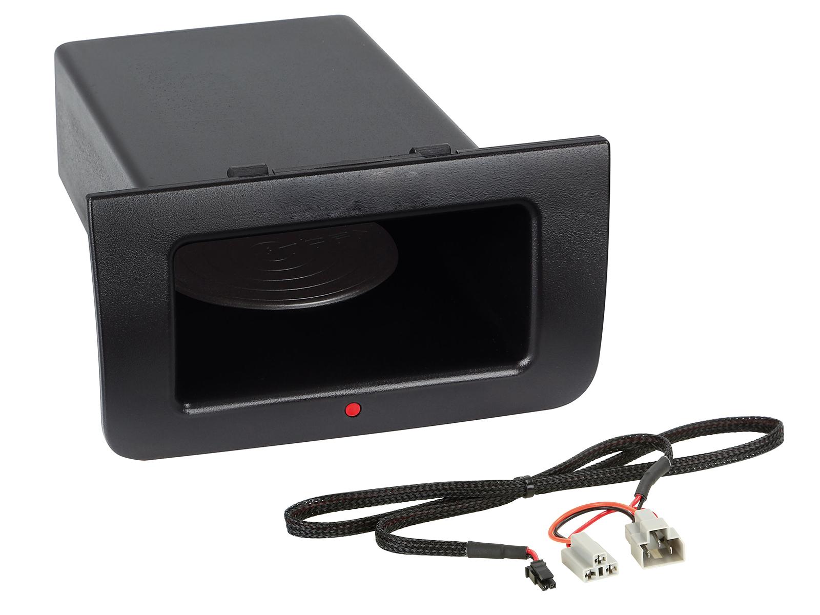 Wireless charging pocket for Mercedes Benz vehicles. Integrates seamlessly into an OEM location to provide a powerful wireless charge to Qi-compatible devices