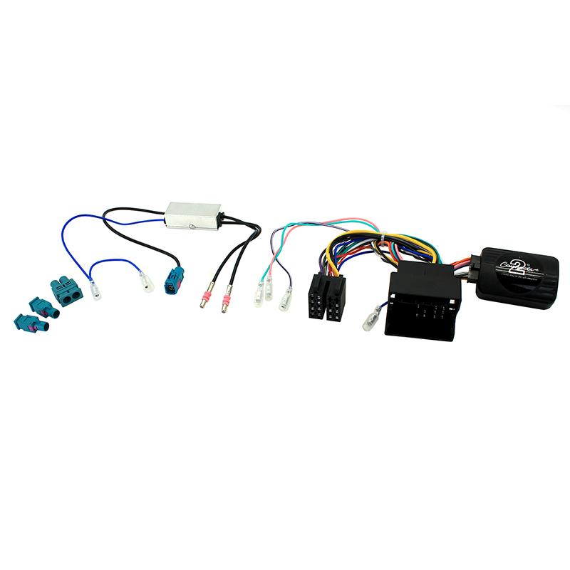 Skoda Steering Wheel Control interface with double fakra antenna adapter.